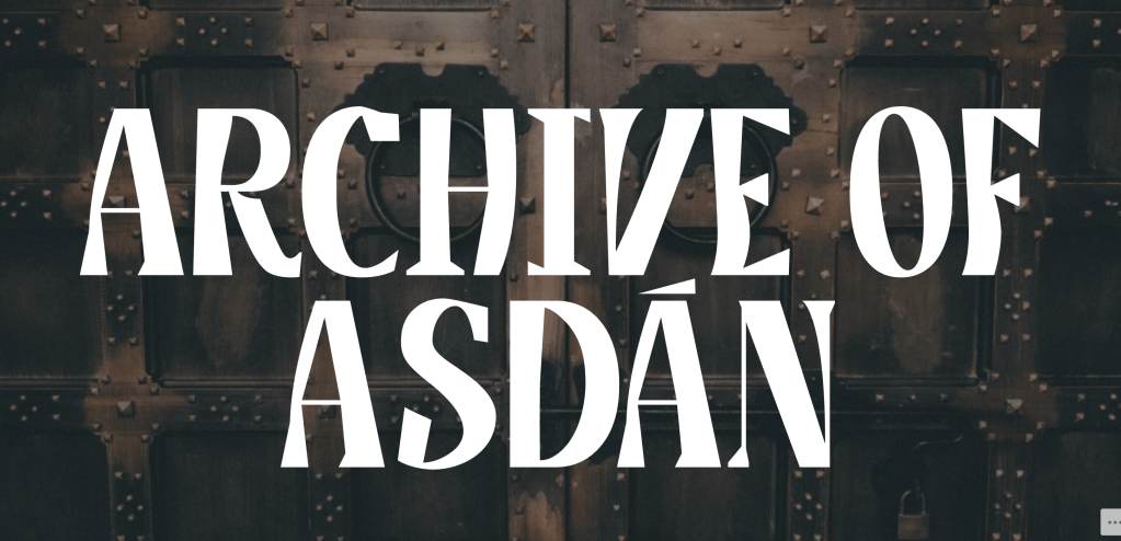 The Archive of Asdán is a very long-term project: a kind of lore book for the world of the Waters Cycle and all the related stories. It likely won’t see any action soon… unless I run up against a deadline.